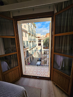 Day #3 -4 Day # 4-7 | Oct 29-Oct30 Sun-Mon Oct 30 - Nov 2 Mon-Thu | It was snowing in Denver and 14 degrees and did not know the conditions of the roads so we left early to be safe with time. The roads were good and got to the airport in good time, got through security in less then 15 minutes (I do have Pre). I noticed there was an early flight at 7:55 instead of 9:55, traveling on my Son's United benefits (stand-by) so it was really easy to change, and there were a few seats available. That makes all my airport time/layover for 5 hours in New York. I am hanging out in the United Club Lounges which is very nice, quite, with lots of food and drinks included. Flight to Barcelona staying at the Arc La Rambla Hotel, on La Rambla The view from my room balcony at the Hotel Arc La Rambla (Wonderful Hotel) in Barcelona (Wonderful Location!) I am really happy with finding such a nice hotel on my own. La Rambla: main shopping/tourism/central Area in Barcelona. Was planning on 2 days, (normally book a day or 2 when arriving when traveling just to relax and adjust to the time zone, with no plans). But ended coming 2 days early because the flights seemed better (flying standby on my son's benefits, so I need to look for flights that have empty seats) I went central with a hotel, so I can just step out the door and look around & return when I want. Walked around the La Rambla and Gothic Quarter the day I arrived, mainly to stay awake, short night in Denver, day flight and 6 hour layover in Newark, Night flight to Barcelona, got to hotel via metro about 10 in the morning, yes I am tired. If I stay up until 8pm and then sleep, no jet lag the next day, well I made it until 7pm, but I think I set a new sleep record, I slept until 10am - so 15 hours of sleep - Wow, I do feel rested and no jet lag. Was up until 11 pm the second night. Went for a run the first morning in Barcelona, down La Rambla to the Marina and then to the beach about 3 miles with a 2 mile walk back to the hotel. Rode the Metro and still got also almost 20,000 steps in seeing the unique architecture of this town. I have also met some friendly fellow travels A really nice couple from Indiana that were having pizza, I said I well have to try that some night it looks good. They shared a slice with me just so I would know if I wanted to order it some other night - We had a great conversation. The next night there was a lady dining on the other side of the restaurant, as she was leaving we got talking. She joined me and we had lengthy and very nice conversation. While I finished my second Sangria, She was from Portland Oregon, and super nice lady. I talked with a couple from Austria that had been to Mallorca 2 times and said it was the most beautiful island they had ever seen. Makes me look forward to my time there even more. Did the hop on hop off bus today for an overview of the